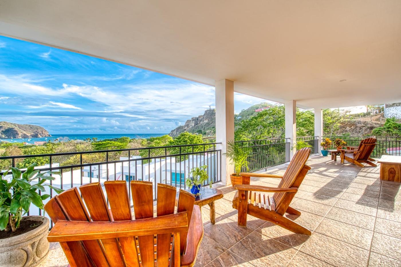 Five-Bedroom House. This Villa a 2-story house, 2 guest houses, 5 bedrooms, 5 full bathrooms, 1 large kitchen, 2 kitchenettes, a family sized barbecue, a large pool, several lounge and seating areas throughout the property, and panoramic views of the San Juan del Sur bay and of the town.
